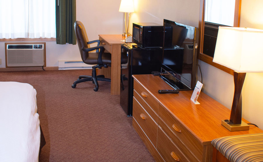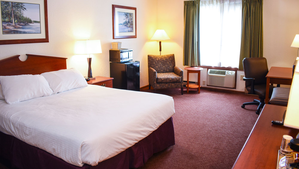 1 Queen Bed Nonsmoking, Handicapped Accessible, Pet Friendly, Free breakfast, free high speed wireless internet access, free local calls, hair dryer, coffee maker, cable TV, alarm clock radio, electronic door locks, and individually controlled air conditioning and heat.